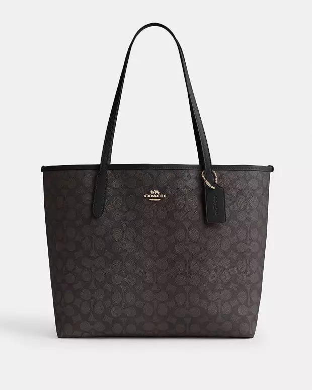 This City Tote Bag is crafted of Signature canvas that elevates your every day. Perfect for work, school or play, this canvas tote bag for women has room for your 13" laptop, water bottle and other essentials. A versatile favorite, it features an easy snap closure and an interior zip pocket to help keep small items secure.