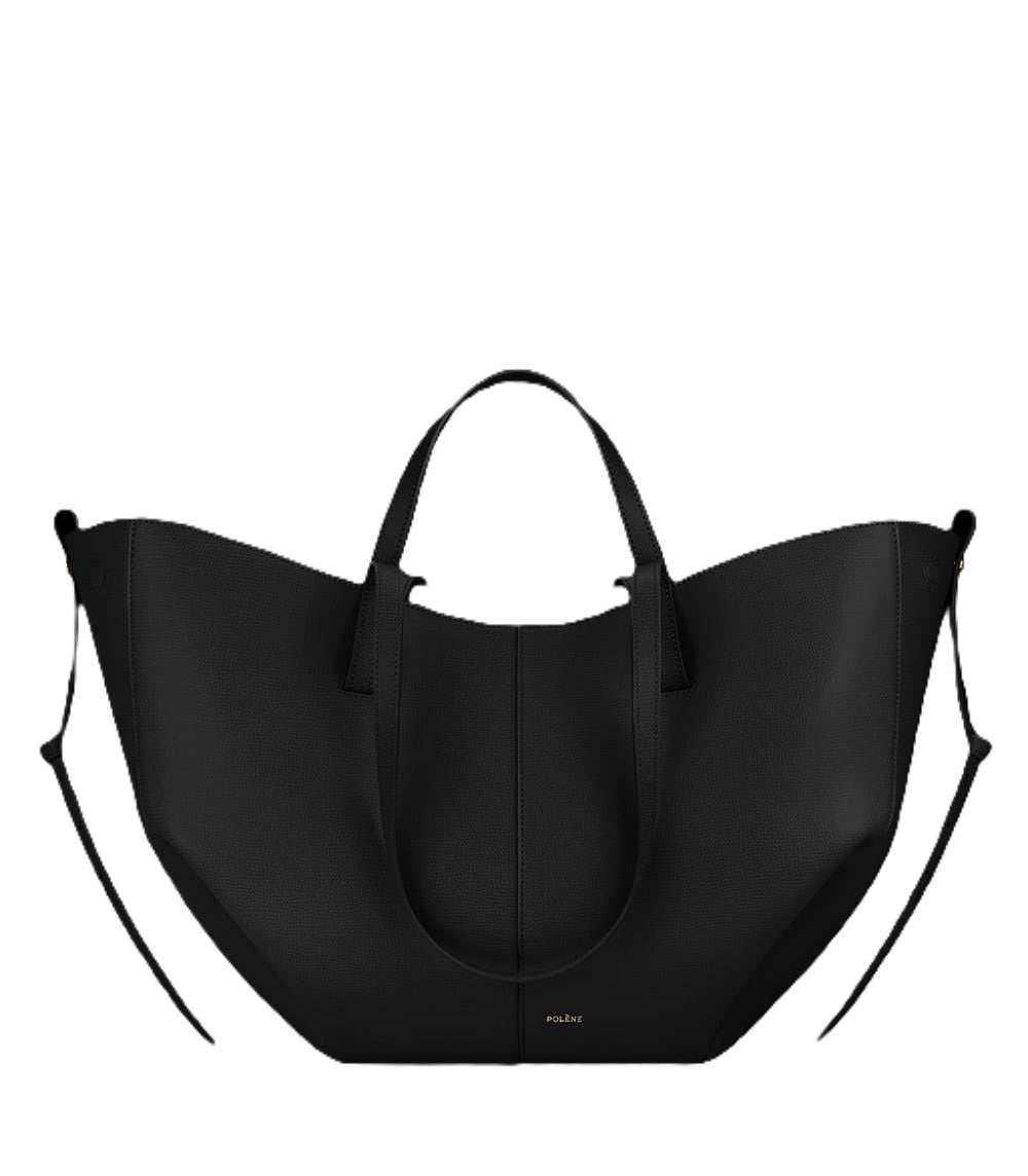 This sculptured tote bag featuring waves, folds, and curves can be used in two ways. Basket-style, with its sides open and straps on the outside, or As a flower-like closed bag, with its sides tucked in and its straps crossed on the inside.