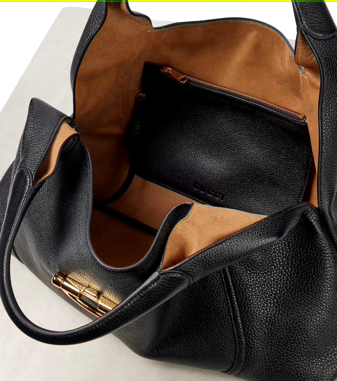 The Gucci Softbit shoulder bag from Gucci is primed to become your new favorite. Expertly crafted from grained leather, the Maxi style is complete with an oversized version of the Half-Horsebit, gold-toned hardware, magnetic fastening, and a detachable pouch.