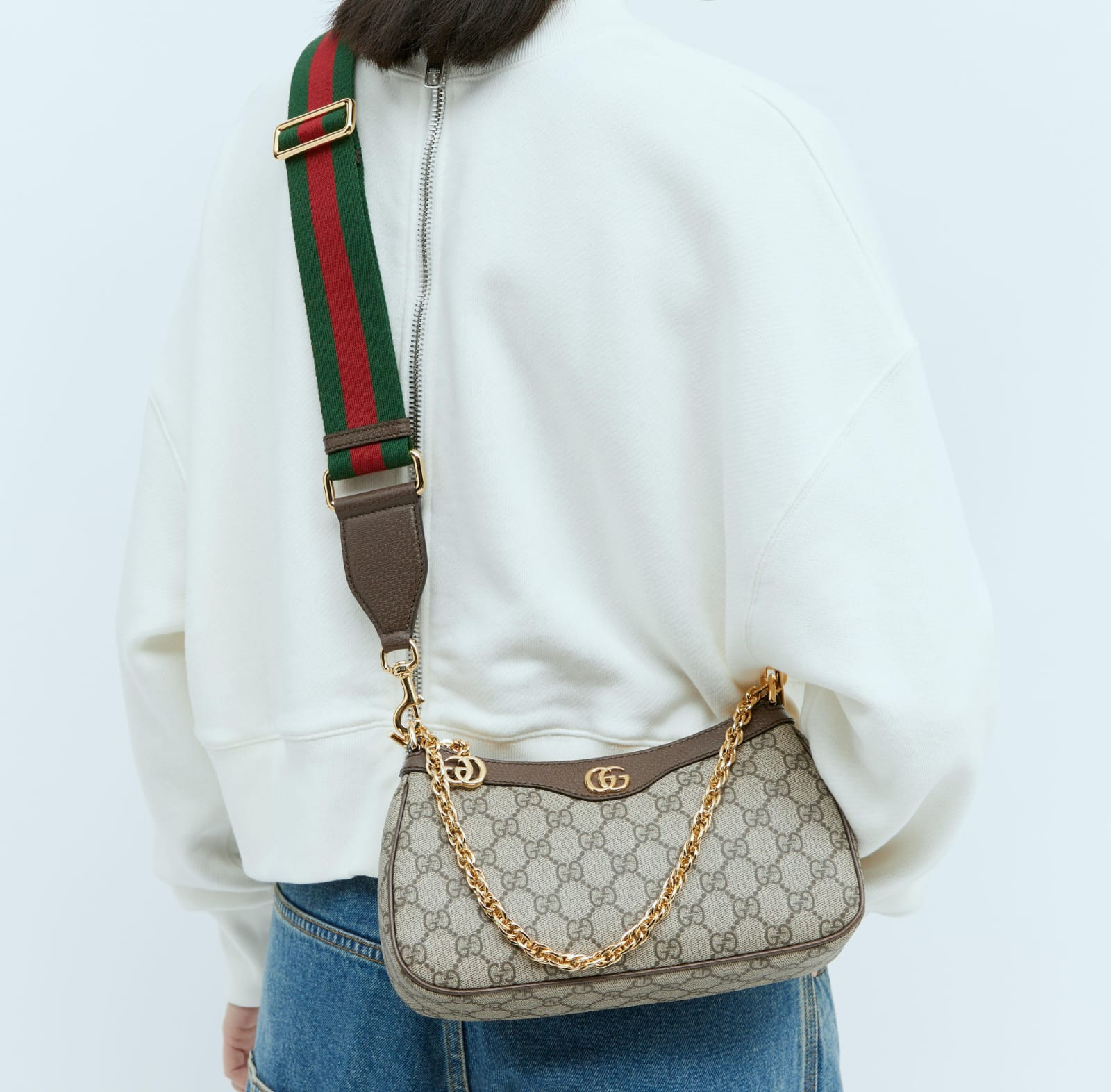 The GG logo is an evolution of the original Gucci rhombi design from the 1930s, and from then it's been an established symbol of Gucci's heritage. This unmistakable pattern decorates this small handbag as part of the latest Ophidia collection. A Double G hardware completes the style